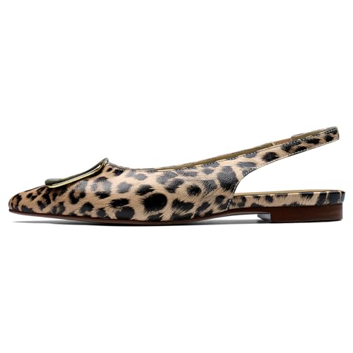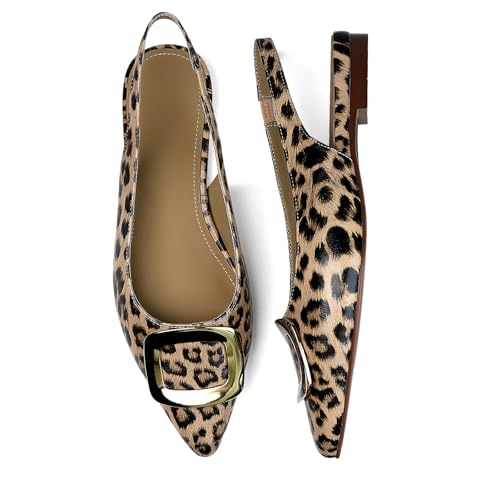 QIV Slingback Flats for Women Leopard Pointed Closed Toe Womens Flat Dress Shoes for Women relaxing Work Low Heel Pumps