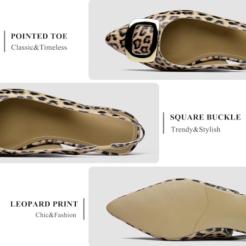 Sole material: RubberOuter material: Polyurethane (PU)Closure type: Pull-OnMaterial: These slingback flats for women are made of premium PU leather, featuring a smooth, soft texture, breathable synthetic lining, and a durable rubber sole for all-day comfort at work or casual outingsStylish Design:The pointed closed-toe design with a bold square buckle and leopard print creates a fashionable yet sophisticated look, making these women's flat dress shoes suitable for both professional and casual settingsVersatile: These leopard slingback flats with a decorative buckle add a trendy touch to any outfit. Whether paired with business attire, skirts, or casual denim, they enhance your overall look effortlesslyComfort: Designed for all-day wear, these Comfortable Work Flats offer a cushioned insole and low heel, providing gentle support whether you’re at the office or out shoppingService: We’re dedicated to your satisfaction — if you have any concerns about your Comfortable Work Flats, feel free to contact us, and we’ll assist you promptly. Perfect for everyday use. excellent materials and excellent craftsmanship ensure long-lasting durability.