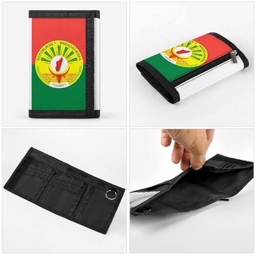 trending ! Flag of Madagascar National Emblem Trifold Wallets for Men Women Ultra Thin Card Holder Purse with Zip Coin Pocket