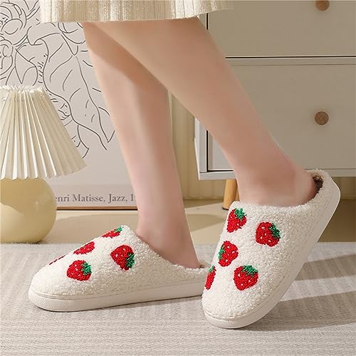 Cute Strawberry Pattern Women's Bedroom Slippers - toasty, gentle, Fuzzy, Non-Slip