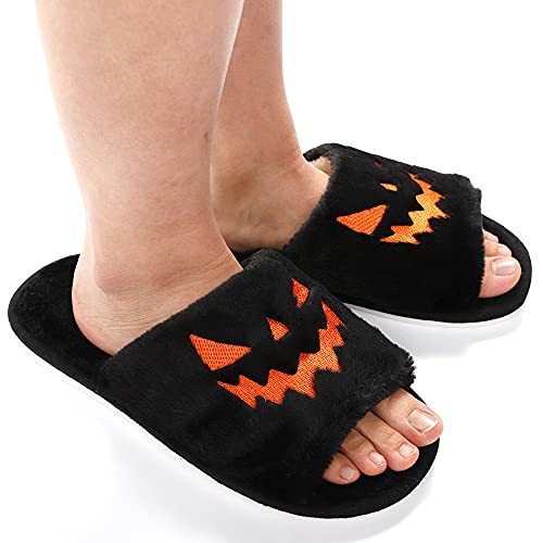 Why Choose TITTOK Spooky Slides Halloween Slippers Jack O Lantern Pumpkin velvety Plush Cozy Open Toe Indoor Outdoor Fuzzy Slippers Gifts For Girls Women Girlfriend Men?