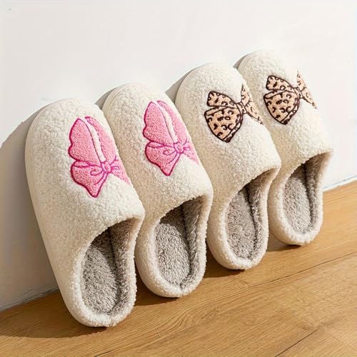 Fuzzy Cute Bow Slippers for Women Winter cozy Cozy House Slippers Plush Indoor Outdoor Shoes