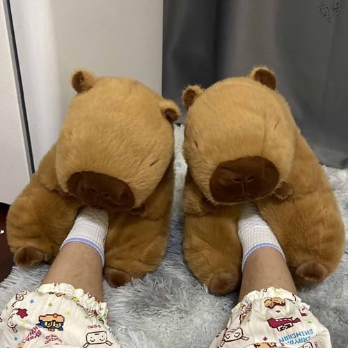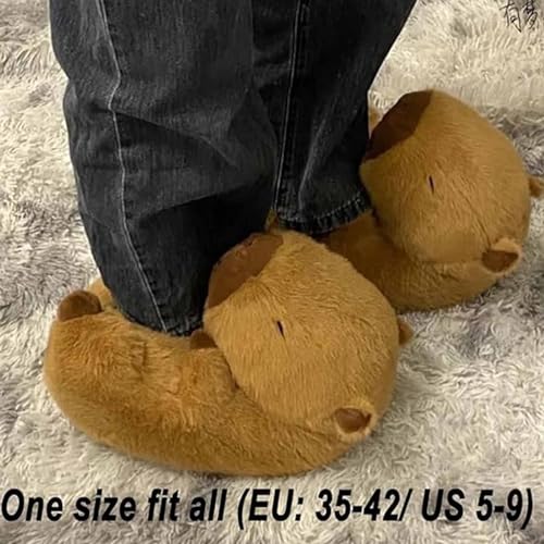 Sole material: Ethylene Vinyl Acetate, Polyvinyl ChlorideOuter material: PlushClosure type: Pull-On【Capybara Slippers】Capybara Slippers feature an adorable capybara shape with intricate details and vibrant colors. One size fit all (EU: 35-42/ US 5-9). They are guaranteed to catch everyone's attention and make you stand out with their cuteness.【Non-slip Sole】The sturdy and non-slip sole ensures stability and safety, making these capybara slippers suitable for both indoor and light outdoor use. The plush lining and cushioned insoles provide a heavenly feel, allowing you to relax and unwind after a long day.【Cozy and Plush Interior】The interior of these slippers is filled with PP cotton, which provides a soft, comfortable, and elastic feel. The plush fabric lining adds a cozy touch, making your feet feel warm and pampered. The durable sole ensures long-lasting wear, making these slippers a reliable and cozy choice.【Versatile and trendy】With a closed toe design, these Capybara Plush Slippers offer additional warmth and protection for your feet. Say goodbye to cold drafts and hello to cozy toes as you relax at home. The simple and stylish appearance makes them a great gift for your family during the cold winter months, bringing a little warmth and joy to their lives.【Perfect Gift】Looking for a unique and thoughtful gift? Look no further! These cute capybara slippers make the perfect gift choice for any occasion. Whether it's a birthday, holiday, or just a special surprise, these slippers are guaranteed to bring warmth, comfort, and a whole lot of cuteness to the lucky recipient. Perfect for everyday use. finest materials and excellent craftsmanship ensure long-lasting durability.