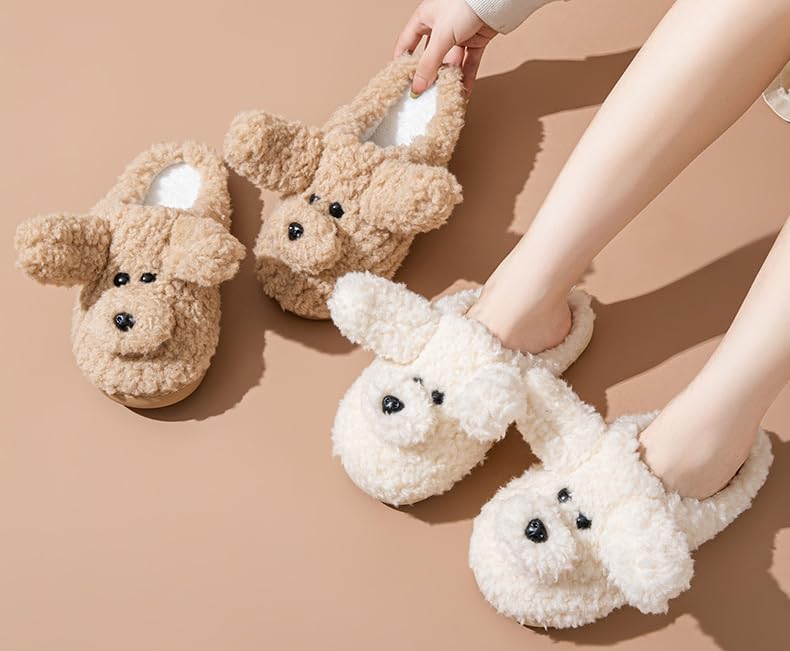 Furry Puppy Slippers for Women cozy Dog Slippers Cozy House Shoes Sandals Slides Indoor Outdoor