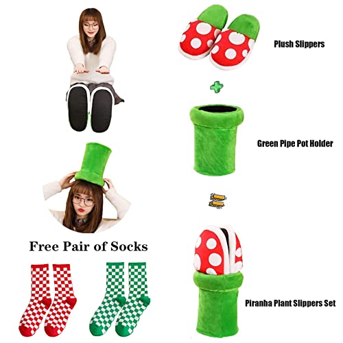 trending ! Jfxgjuv Piranha Plant Slippers, Mushroom Slippers with Pipe Pot Holder, Piranha Plants Plush Funny Loafers with Green Socks