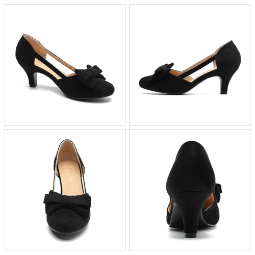 • vintage Kitten Heel: Features a 2.5" sturdy low heel, round toe, side cutout and slip-on style for straightforward wear. The non-slip rubber outsole ensures stability, black heels with bow ideal for all-day comfort.