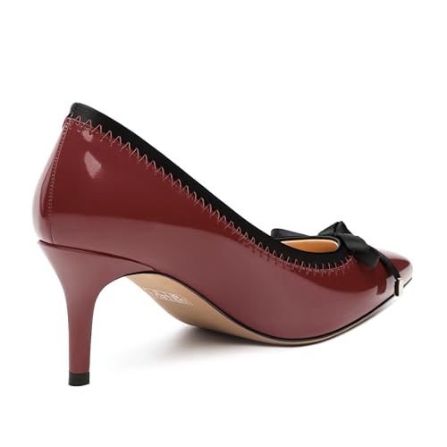 Womens Bow Mid Stiletto Pumps Sexy Patent Pointed Toe Evening Wedding Stiletto Mid Heel Pumps Dress Shoes 2.5 Inch