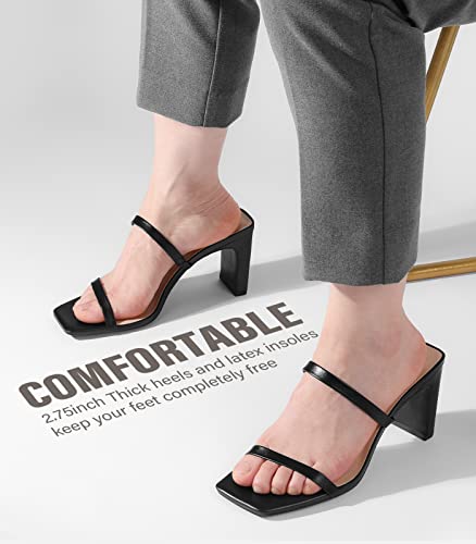 Leevar Square Toe Heels Sandals - White Black Nude Heels Chunky Two Strap Low Heels for Women Leather Mule Sandals Slip On Block Heels for Party Dating Daily Standard Size 2.75 Inch
