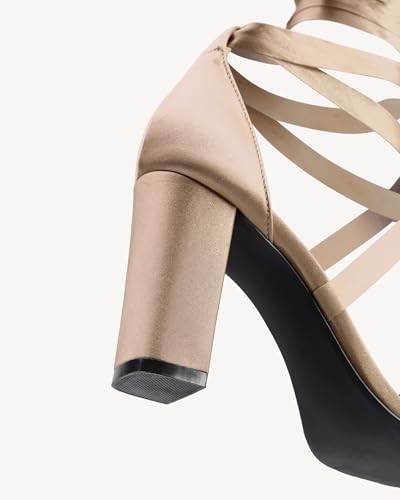 trending ! Women’s Lace-Up Block Heel Sandals – 3.15 inch Square Open Toe Wrap Around Heeled Dress Shoes for Party, Date Night, or Summer Outfits