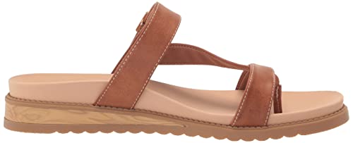 Fabric type: 100% TextileOrigin: Made in the USA or ImportedSole material: RubberOuter material: Faux LeatherSUSTAINABLY CRAFTED: A womens casual footbed sandal with smooth linings made from recycled bottlesMATERIALS: A womens footbed sandal with faux leather strapsFIT: A womens slip on casual sandal with rolled toe thong post and stretch gore for extra flexibilitySUSTAINABLE COMFORT: Insole Technology with anatomical cushioning, comfort & supportMOVEMENT: Lightweight, flexible construction moves with youSTYLE: A womens strappy casual thong sandal with overlapping straps, metallic buckle detail, and contoured comfort footbed with a slim 1 1/3 inch faux wood wedge heel and scalloped sole Perfect for everyday use. finest materials and excellent craftsmanship ensure long-lasting durability.