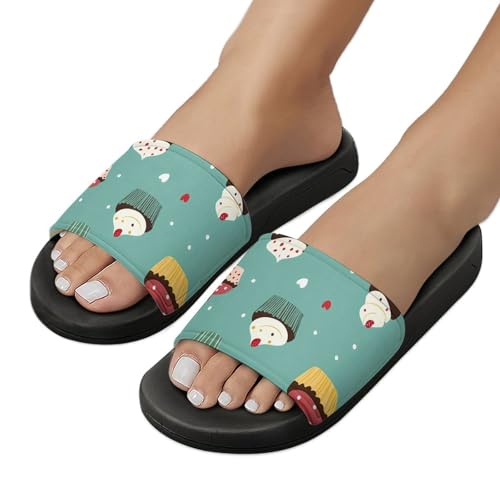 trending ! Cute Cupcake Pattern Slippers for Men Wormen Shower Bathroom Slipper Indoor Beach Non Slip Sandal