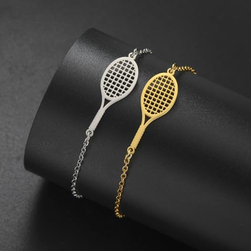 Material: Stainless SteelMetal type: Stainless SteelClasp type: Lobster ClawChain type: Tennis ChainGem type: No gemstoneBrief content visible, double tap to read full content. Full content visible, double tap to read brief content. Bundles with this item Previous page Tennis Racket Necklace Bracelet for Women Men -18% $15.98 Next page See all bundles🎾Tennis Racket Bracelet: Tennis bangle bracelet incorporates with a dainty tennis racket shaped pendent, vivid as a tennis ball, symbol of embodies courage, strength, and perseverance sportsmanship, and the belief in sports. Great inspirational tennis gifts for women, tennis fans/player/coaches/team.🎾Material: Tennis racket bracelet with premium stainless steel, is hard wearing, colorfast, soft and lightweight to wear, dainty but cute design, great for most sport tennis lover or player.🎾Pendant Size: Tennis bracelet pendant size: (1.18*0.39 inches), Weight 0.11 oz. chain length 18+ 2. Suitable for a variety of styles, especially sportswear.🎾Tennis Gift Jewelry for Women: This eye-catching charm bracelet is the great gift choice for Christmas/back to school/birthday/valentines day/Mother's Day/Father's Day/Anniversary/Parties/competitions/Thanksgiving, friendship bracelet gifts etc, perfect for women, mother, wife, men, sister, friends or Teen, tennis players, coaches, athletes, tennis fans.🎾Packing & Service: Each women sport bracelet will be packed in a nice black velvet pouch. If you have any questions, please contact us at any time and will be resolved soon. Perfect for everyday use. superior materials and excellent craftsmanship ensure long-lasting durability.