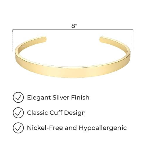 - STYLE: This polished 18K gold tone 8" cuff bracelet provides the flawless combination of simplicity and shine
