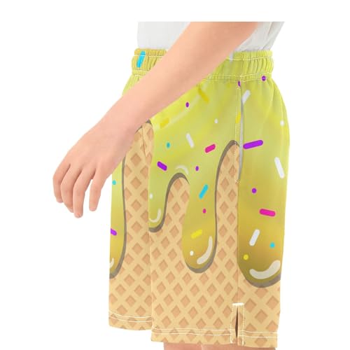 Boys Casual Shorts Athletic Gym Shorts with Elastic Waist Pocket Ice Cream Summer Sports Active Kids Clothes 7-15Y