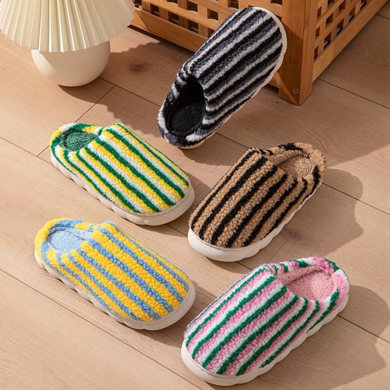 trending ! Women House Slippers with Colorful Stripe Cozy Non-Slip comfortable Fuzzy Plush Home Shoes
