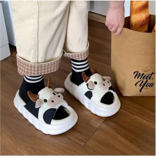 trending ! Cow Slippers for Women Men, Cute Cartoon Animal Slippers, Fuzzy/Linen Kawaii House Slippers, Winter/Summer Cow Slides for Indoor and Outdoor