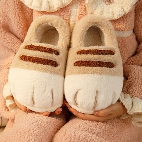 Cat Paw Slippers for Women,Cat Feet Slippers,Cat Foot Slippers,Indoor Outdoor Cute Funny cozy Cozy Fuzzy Winter House Shoes (Khaki,42-43)