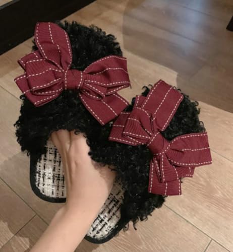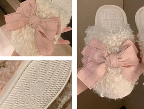 Epsion Plush Cute Bow Slippers for Women Furry Comfy Indoor Outdoor Non-Slip House Slippers Memory Foam cozy Winter Shoes