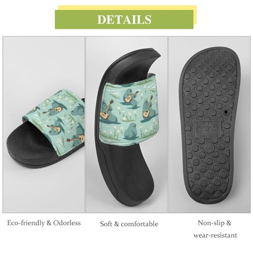 trending ! Manatee Play Guitar Women's House Sandals Non Slide Bathroom Beach Slippers for Men