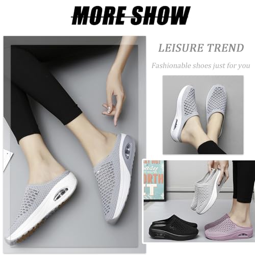 VOODUE Hatmeo Women Orthopedic Slippers, Diabetic Breathable Arch Support Shoes, Mesh Woven Orthopedic Breathable silky Shoes Sneakers for Swollen Feet Women(Grey,US 6)