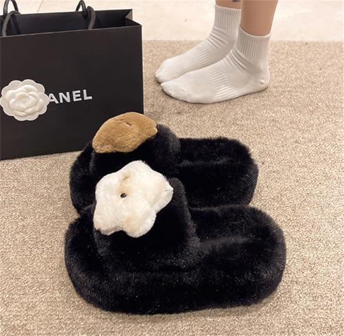 Epsion Fuzzy Slippers for Women Star Shape Comfy Open Toe Slip on Thick Sole House Shoes