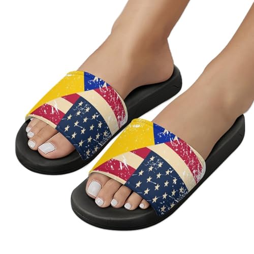 More information about U.S.A And Bosnia And Herzegovina Retro Flag House Slippers for Women Men Lightweight Open-toe Slide Shoes for Bathroom Swimming Beach