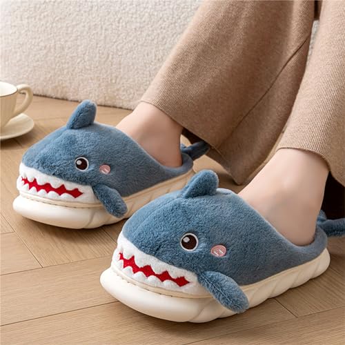 Animal slippers for Women Men Cute Shark Slippers Cozy adult home winter fuzzy cotton slippers