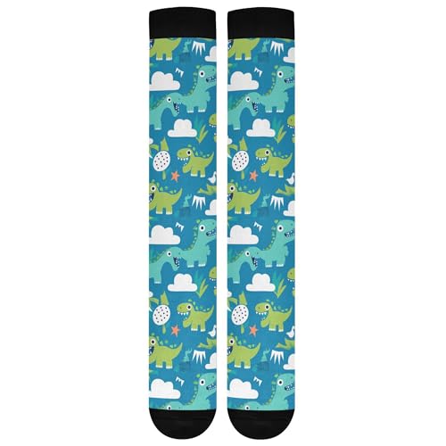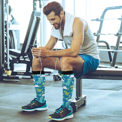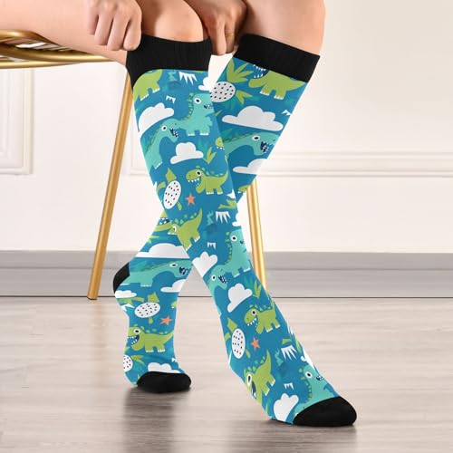 JUNZAN Blue Dino Compression Socks for Women & Men Circulation Long Socks for Running Cycling Athletic Nurse