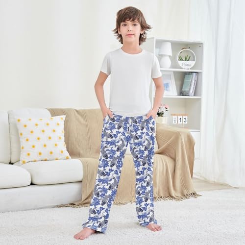 trending ! Carp Fish Floral Boys Long Pants velvety Trousers Elastic Waist Kids Lounge Bottoms with Pockets S-XL