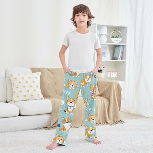 Boys' Pants Blue Corgi Dog Animals Long Bottoms Jogger Pants Elastic Waist Trousers with Pockets S-XL