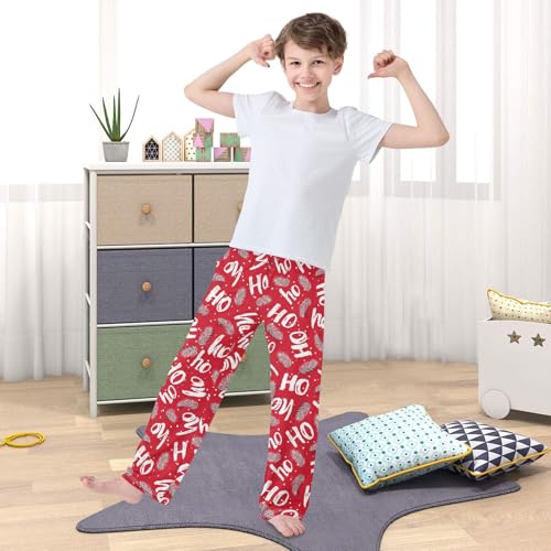 More information about CaTaKu Boys Hohoho Christmas Fir Branches Pants for Boys Girls Wide Leg Sweatpants Kids Long Bottoms with Pockets Size 6-14Y