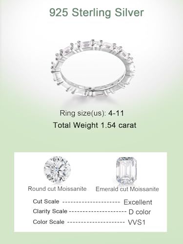 Ring size: 4Item width: 14.86 millimetersMaterial: GemstoneMetal type: Sterling SilverMetal weight: 2.7 gGem type: Moissanite【7 Stone Wedding Band】- This exquisite wedding band consists of seven 3.5mm round cut moissanite with a total weight of 1.4 carats. Moissanite has more than twice the fire color of diamonds, and the 4-prong setting allows the ring to reflect more light, allowing the wearer to appreciate the captivating light and color in every movement of the hand.【Extraordinary Moissanite】- These D color VVS1 clarity moissanites offer brilliance and fiery that surpasses diamonds. All of them are created in a laboratory, ethical and can pass the diamond test easily, making them a budget-friendly pick for buyers looking for excellent jewelry.【Exquisite Craft】- Made from 925 sterling silver with rhodium plated surface to ensure hypoallergenic and won't harm your skin. With its excellent shine and tarnish resistance to maintain its sparkle for a long time, you will receive many compliments every time you wear it.【Delicate Gift】- Beautifully packaged in a velvet gift box. Ideal gift for your lover, family, or friends, whether you're celebrating a Birthday, commemorating a Anniversary, Christmas or expressing your love on Valentine's Day.【Worry-Free Customer Support】Your satisfaction is most important to us, we offer 90 days money back and exchange guarantee, if you have any questions, please feel free to contact us by email, we will respond within 24 hours. Perfect for everyday use. finest materials and excellent craftsmanship ensure long-lasting durability.