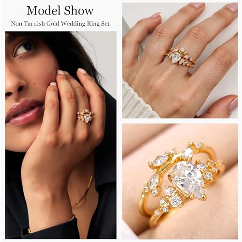 Engagement Rings for Women Non Tarnish Gold Wedding Ring Set for Women 14K Gold Plated Fake Engagement Ring Dainty Gold Stackable Rings Jewelry Gifts
