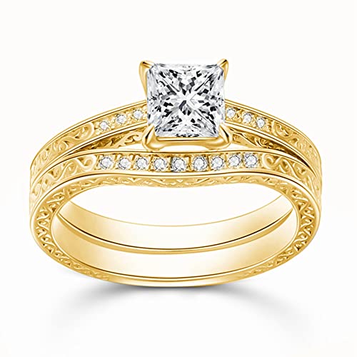 • 💖【Design】-Two-piece bridal set with engagement ring and wedding ring. The four corners of the princess-cut moissanite represent love, beloved, cherished, and affection, respectively. The vintage styles are uniquely designed by the designer and displayed on the ring through exquisite craftsmanship. A variety of styles can be selected.This well designed bridal set will really look incredible on women's finger and it will be a gift that she never forgets.