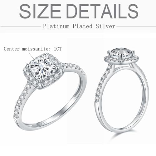 More information about Blocaci Halo Cushion Cut Engagement Rings for Women White Gold 1 Carat Center Moissanite Engagement Rings Platinum Plated Silver Wedding Anniversary Promise Rings for Women