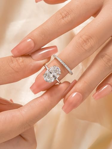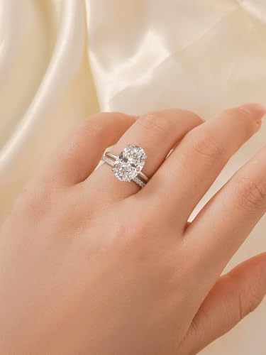 5.0CT Oval Cut Wedding Ring Set for Women, 925 Sterling Silver Engagement Ring and Band, 5A Cubic Zirconia Simulated Diamond Bridal Jewelry
