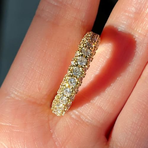 - Paved with 5A+ stunning Cubic Zirconia CZs which are carefully selected, retro full eternity design, 3-row CZ simulated diamonds. The sparkling of the band ring makes you win the attention in any occasions