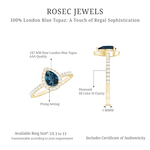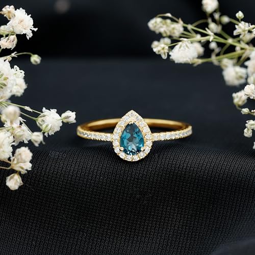 trending ! Natural London Blue Topaz Halo Ring, AAA Quality, Teardrop Wedding/Engagement Ring