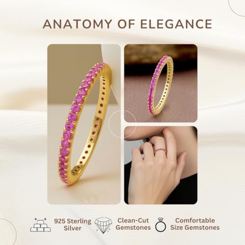 More information about Stackable Eternity Ring for Women |Gold Plated – Ruby, Blue Sapphire, Simulated Diamond, Pink Sapphire, Emerald| Wedding Band |hypoallergenic Rings| Labradorite Ring | Birthstone Gift Jewelry for Her