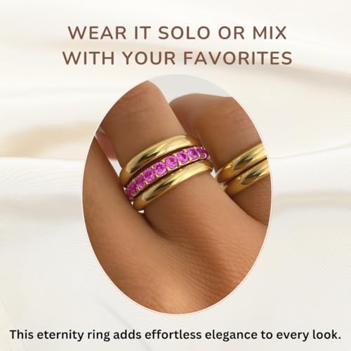 trending ! Stackable Eternity Ring for Women |Gold Plated – Ruby, Blue Sapphire, Simulated Diamond, Pink Sapphire, Emerald| Wedding Band |hypoallergenic Rings| Labradorite Ring | Birthstone Gift Jewelry for Her