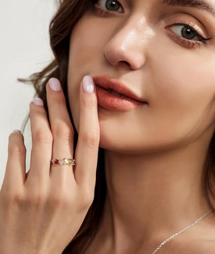 Rainbow Engagement Ring for Women Colorful Round Baguette Cut Cubic Zirconia CZ Stackable Wedding Band Promise Rings for Her Size 4-11