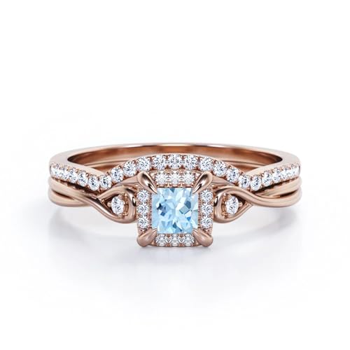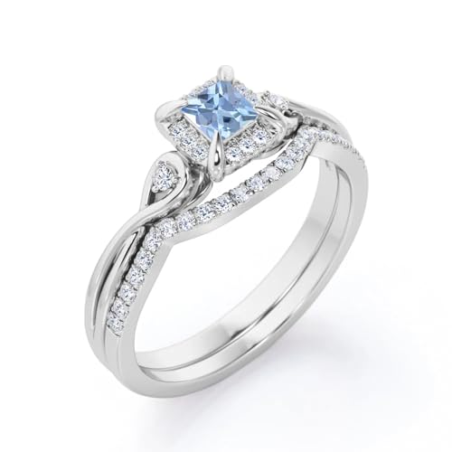 Ring size: 4-12Material: Sterling SilverMetal type: White GoldGem type: AquamarineItem type name: Wedding Ring SetsWEDDING RING SET DESIGN - This wedding ring set features a 1-carat princess cut aquamarine and halo design, creating a exceptional sense of sophistication. The slightly curved wedding band paved with moissanite adds unparalleled luster to the bridal ring set.PRODUCT SPECIFICATION - Ring material: 925 sterling silver/10k/14k/18k gold. Ring color: white gold / yellow gold / rose gold. Center stone: 1ct princess cut aquamarine.Side stone:moissanite.Ring size: 4-12(include half size).CUSTOMIZATION PROCESS - Please click Customize Now to enter the customization page, select your ring size,ring material and ring color, and choose whether to engrave according to your needs.CRAFTSMANSHIP - The prototype of the ring is produced from a mold, then polished by hand, set with appropriate gemstones, and finally wiped. Every piece of jewelry is the result of our hard work and dedication, reflecting our efforts and aspirations.MAINTAINANCE - Periodically soak the ring in clean water, gently wipe the surface with a soft brush, and then wipe it dry. This can maintain the beauty and texture of the ring for a long time. Perfect for everyday use. finest materials and excellent craftsmanship ensure long-lasting durability.