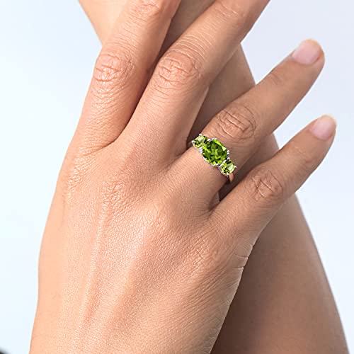 trending ! Gem Stone King 3.45 Cttw Green Peridot 3 Stone Engagement Ring For Women | 925 Sterling Silver | Gemstone August Birthstone | Cushion 8MM | Available in Size 5,6,7,8,9