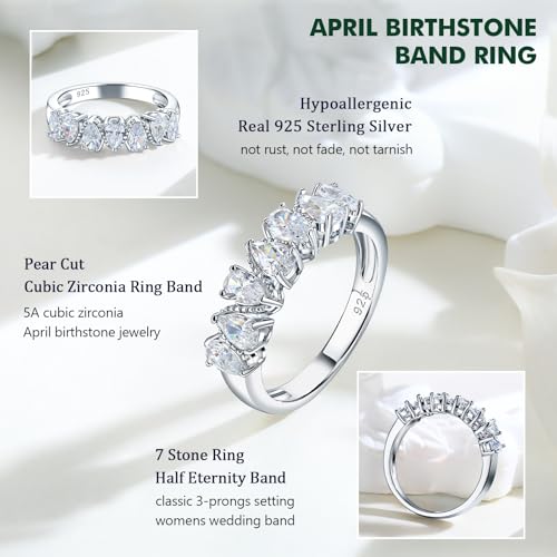 Pear Cut Half Eternity Band Rings for Women 7 Stone Engagement Ring 925 Sterling Silver Created Gemstone Ring Birthstone Rings Wedding Bands Size 6 to 10