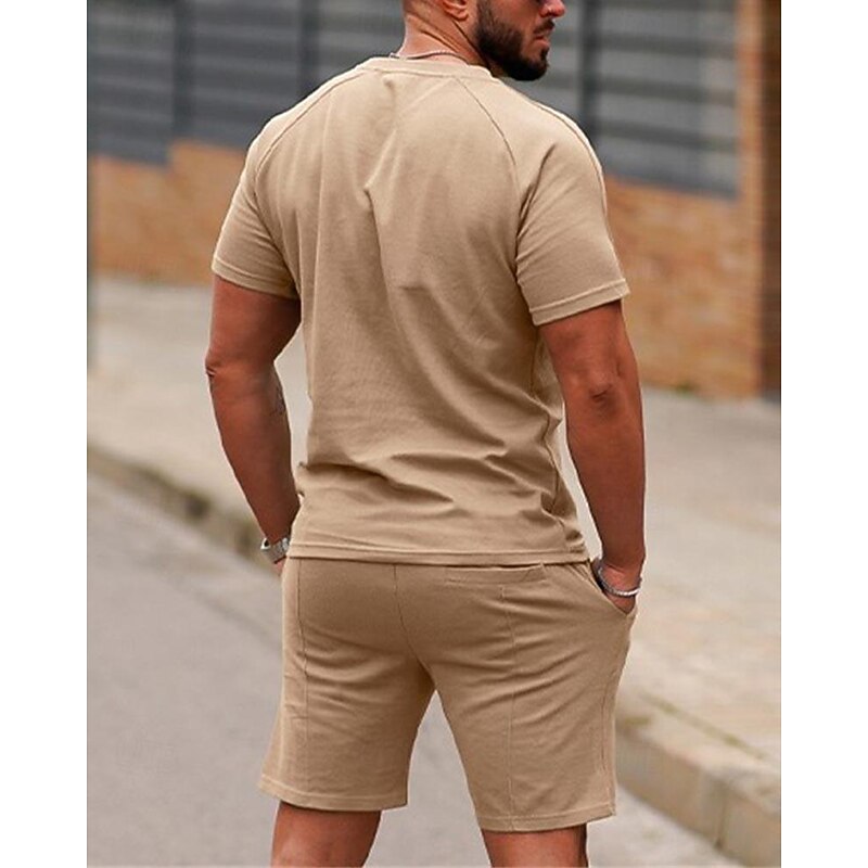 Highlights [Fabric] : This men's two-piece outfit is crafted from soft, breathable polyester, offering a perfect combination of comfort and durability. The material ensures easy movement, making it ideal for daily wear and casual outings during the summer months. [Fit] : The t-shirt features a classic crew neck and a micro-elastic fit, providing a comfortable and slightly relaxed silhouette. The matching shorts have a casual fit that falls above the knee and includes an elastic waistband with an adjustable drawstring for a secure and personalized fit. [Design Highlights] : The ensemble offers a timeless and cohesive look with plain colors available in Green, White, Pink, and Khaki. The simple yet fashionable design is perfect for those who appreciate subtlety and elegance. The set is completed with a short-sleeve t-shirt that pairs perfectly with the plain shorts, highlighting a classic and versatile fashion sense. [Occasions] : This outfit is perfect for various casual settings, including daily wear, vacations, and light athletic activities. Whether you are lounging at home or enjoying a casual day out, this set combines functionality with style, making it an ideal choice for multiple occasions. [Size Range] : Available in sizes M, L, XL, XXL, and 3XL, this outfit caters to a wide range of body types, ensuring a comfortable fit for everyone. Whether you're looking for a size that offers more relaxation or a more tailored feel, this ensemble has you covered. Perfect for everyday use. finest materials and excellent craftsmanship ensure long-lasting durability.