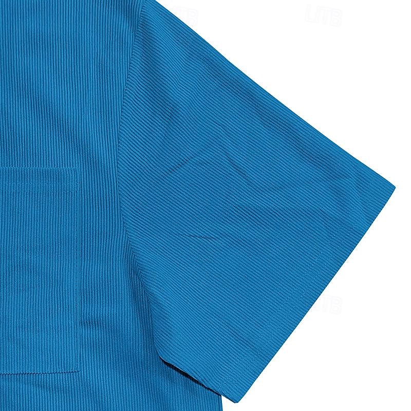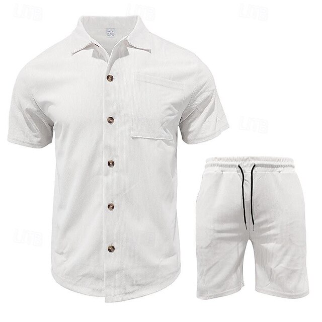 Highlights [Fabric] : Crafted from breathable, lightweight polyester, this men's two-piece outfit ensures comfort throughout the warm summer months. The material offers micro-elasticity, allowing for ease of movement and a relaxed fit. [Fit] : The set includes a short-sleeve, plain T-shirt with a turndown collar and a pair of matching shorts. The relaxed fit of both pieces provides a laid-back style suitable for casual wear while maintaining a fashionable appearance. [Design Highlights] : The T-shirt is designed with a vintage turndown neckline and features a convenient chest pocket for added practicality. The brown buttons offer a subtle contrast to the plain white fabric, enhancing the overall design. The shorts come with an elastic waistband and an adjustable drawstring, ensuring a customizable and comfortable fit. [Occasions] : Perfect for daily wear, vacation outings, and casual get-togethers, this outfit is versatile enough to suit various settings. Its simple yet fashionable design makes it an ideal choice for easy-going summer days. [Size Range] : Available in a range of sizes from S to 3XL, accommodating a variety of body types. The set is offered in multiple colors, including Green, White, Black, Blue, and Khaki, allowing for personalized style preferences.