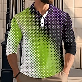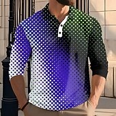 trending ! Men's Abstract Geometic Polo Long Sleeve Polo Shirts Lapel Casual Athleisure Daily Wear 3D Print Buttons Spring Fall Winter Red Blue Green