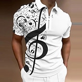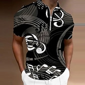 Why Choose Music Festival Men's Music Zip Polo Shirts Golf Shirt Short Sleeve Polo Shirts Collared Shirts Casual Vacation Wear Festival Wear Party Outfits 3D Print Quarter Zip Polo Light Yellow Black White+Black?