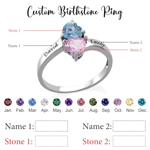 • Personalized Promise Rings for Her: Express your love and connection by engraving your loved one's name along with your own on this gorgeous custom birthstone ring. outstanding for couples, family, best friends, or siblings, it symbolizes enduring bond.