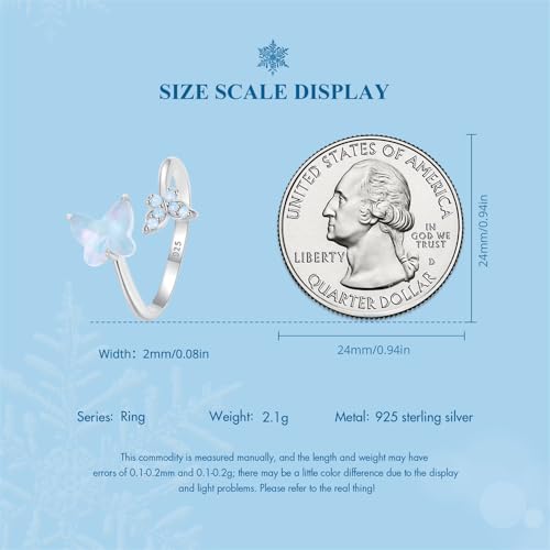 More information about Opal Butterfly Adjustable Open Wrap Ring 925 Sterling Silver White Gold Plated Stacking Statement Blue Wedding Finger Rings for Women Fashion Layered Comfort Fit Christmas Valentine Jewelry Gift for Wife